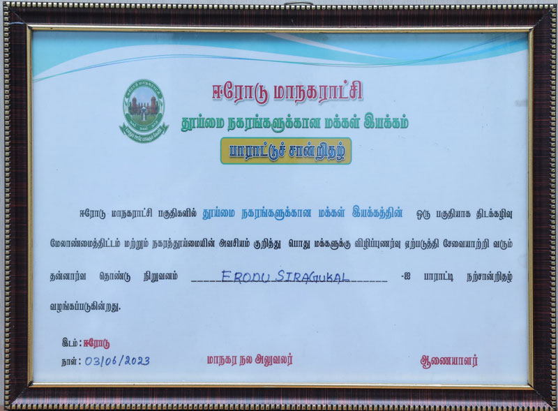 Received Recognition from Music Legend – Ilayaraja and Actor Nassar for working towards TN Flood Relief activities.